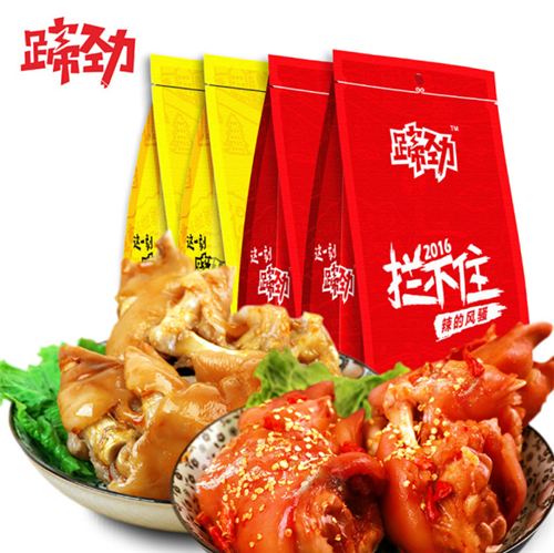 蹄勁豬蹄,我們鹵的不只是豬蹄,更是能量與樂趣;從一出生,就自備能量標(biāo)簽和互聯(lián)網(wǎng)精神。全民參與試吃,漂洋過海創(chuàng)新,百位美女挑蹄,眾多大咖獻(xiàn)計(jì),這只辣的風(fēng)騷、香的誘惑的豬蹄在2015成為最具活力和創(chuàng)意的農(nóng)業(yè)深加工品牌:營銷視頻點(diǎn)擊量突破600萬,微信公眾平臺(tái)一夜?jié)q粉6萬,獲得2015年“標(biāo)桿”中國營銷大獎(jiǎng)——?jiǎng)?chuàng)新案例獎(jiǎng),得到羅輯思維、億邦動(dòng)力、南方人物周刊等權(quán)威媒體平臺(tái)的鼎力推薦,為中國農(nóng)業(yè)探索互聯(lián)網(wǎng)營銷模式提供了良好范本!