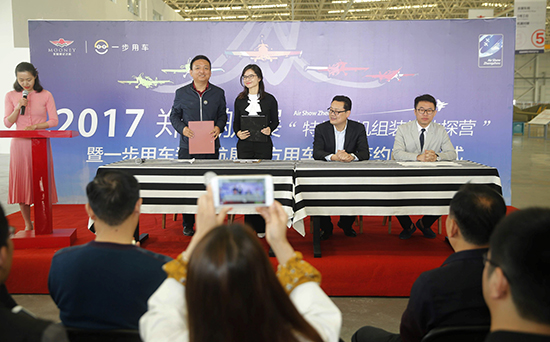 在當(dāng)天活動現(xiàn)場,還舉行了一步用車鄭州航展官方用車平臺簽約交付儀式。一步用車向2017鄭州航展執(zhí)委會免費提供50輛“小黃車”作為通勤用車,航展執(zhí)委會日常辦公、駕駛員和機場工作人員日常通勤,安保及警察周邊巡邏均使用這些“小黃車”。