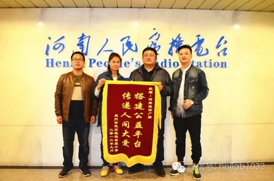 河南經(jīng)濟(jì)廣播《讀書(shū)吧!少年》第二季在9月3日走進(jìn)了禹州市花石鎮(zhèn)觀(guān)音堂小學(xué),時(shí)隔一月有余,禹州市花石鎮(zhèn)觀(guān)音堂小學(xué)的校長(zhǎng)王變變女士也對(duì)我們的工作表示由衷的敬意,為了表達(dá)自己的感恩之心,不惜冒雨前來(lái)送上滿(mǎn)含感激之情的錦旗。