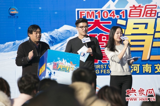 準(zhǔn)備工作已經(jīng)就緒,車(chē)友們已經(jīng)按捺不住要滑雪的心情了,在滑雪正式開(kāi)始之前,1041《MORE FUN 音樂(lè)》主持人王哲和《馬路歡樂(lè)派—早間》主持人彎彎,禹州市大鴻寨臥佛山旅游開(kāi)發(fā)有限公司總經(jīng)理王鋒偉先生也來(lái)給大家加油打氣了。