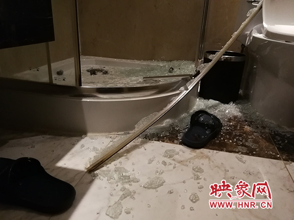 姜先生說(shuō),2月28日下午,他入住鄭州某酒店的520房間。5點(diǎn)左右,他從淋浴房?jī)?nèi)洗完澡準(zhǔn)備出來(lái),可就在他把浴室玻璃拉門打開(kāi)的那一剎那間,突然聽(tīng)見(jiàn)“砰”的一聲巨響。玻璃碎片四處橫飛,將他的手部、腕部及腳部等處扎傷,頓時(shí)鮮血直流。