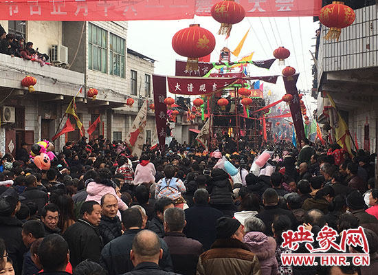 新鄭市觀音寺鎮(zhèn)太清村,新鄭、長葛、禹州的三縣交界處。3月3日下午15時許,太清村的街上人山人海,水泄不通。各條街道上鑼鼓喧天,熱鬧非凡。多個舞獅團(tuán)隊(duì)開始在高高樹起的架子上表演,地面上各種各樣的民間表演爭奇斗艷。