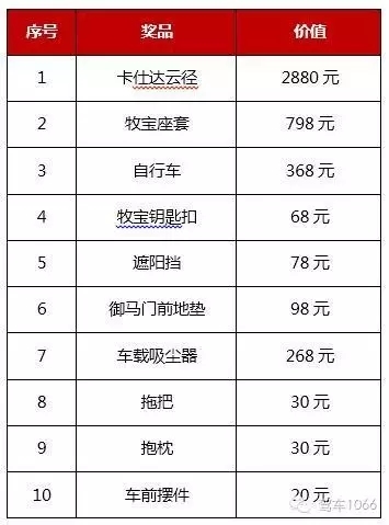 此外,現(xiàn)場(chǎng)訂車(chē)還可以參與幸運(yùn)大抽獎(jiǎng),價(jià)值2880元的卡仕達(dá)云徑,價(jià)值798元的牧寶全車(chē)座套、價(jià)值368元的自行車(chē)、價(jià)值268元車(chē)載吸塵器、價(jià)值68元的鑰匙扣等你拿回家!