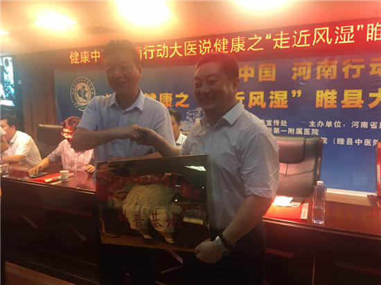 07月23日上午,由河南省衛(wèi)計委宣傳處指導,河南省醫(yī)學科普學會、醫(yī)藥衛(wèi)生報主辦的“健康中國 河南行動 大醫(yī)說健康”開啟第二站:“走進風濕”睢縣大型醫(yī)學科普宣講義診活動。