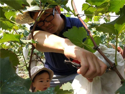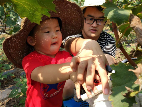 難得的親子互動機(jī)會,不僅能讓寶貝了解葡萄是如何生長和采摘的,還能和寶貝來次親密互動~