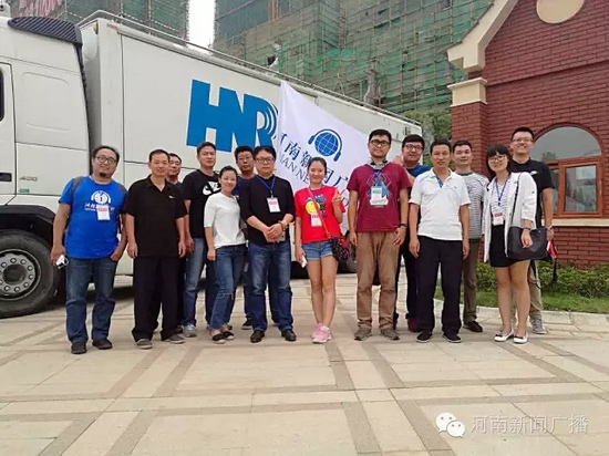 有河南新聞廣播的聽(tīng)眾粉絲在直播車前互相留影