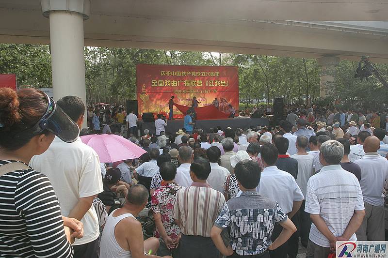 6月30日,在中國(guó)共產(chǎn)黨九十華誕來(lái)臨前夕,河南電臺(tái)戲曲廣播與河南電視臺(tái)九頻道《明星有戲》欄目合作,走進(jìn)鄭州大石橋西南廣場(chǎng),為廣大市民奉獻(xiàn)了一臺(tái)內(nèi)容精彩、形式別致的紅色戲曲演唱會(huì)。這是繼6月12日走進(jìn)鄭州賈砦社區(qū)之后“紅戲會(huì)”河南站的第二場(chǎng)演出。演出現(xiàn)場(chǎng),戲迷票友通過(guò)對(duì)決比拼的方式,激情演唱了《劉胡蘭》、《紅燈記》、《智取威虎山》、《江姐》、《紅色娘子軍》、《村官李天成》等戲當(dāng)中觀眾喜聞樂(lè)聽(tīng)的紅色戲曲唱段。豫劇名家魏俊英、范靜,中國(guó)戲劇梅花獎(jiǎng)得主張春玲、顏永江,《梨園春》明星擂主謝憲笙等也表演了各自的拿手好戲,并與戲迷積極互動(dòng)。精彩的節(jié)目不時(shí)博得現(xiàn)場(chǎng)觀眾的陣陣掌聲,也把此次紅戲會(huì)推向了一個(gè)又一個(gè)高潮……“紅戲會(huì)”系列活動(dòng)由全國(guó)戲曲廣播聯(lián)盟主辦,全國(guó)各省、市30家電臺(tái)協(xié)辦。從2011年6月至11月,開(kāi)展以歌頌黨、歌頌祖國(guó)、歌頌人民軍隊(duì)、歌頌社會(huì)主義、歌頌改革開(kāi)放為主要內(nèi)容的展演、展播系列活動(dòng),并聯(lián)合制作30套“紅戲會(huì)”廣播節(jié)目在各地電臺(tái)播出,以戲曲形式慶祝黨的90華誕、再現(xiàn)黨的光輝歷程、謳歌黨的豐功偉績(jī)。據(jù)了解,除河南之外,“紅戲會(huì)”系列活動(dòng)從本月開(kāi)始已在全國(guó)各地陸續(xù)舉行。從10月18日開(kāi)始,全國(guó)戲曲廣播聯(lián)盟將在上海豫園中心廣場(chǎng)舉行“鄉(xiāng)音和曲——紅戲會(huì)天天演”活動(dòng),11月17日還將舉行盛大的“紅戲會(huì)”頒獎(jiǎng)儀式、閉幕式及全國(guó)戲迷展演活動(dòng)。