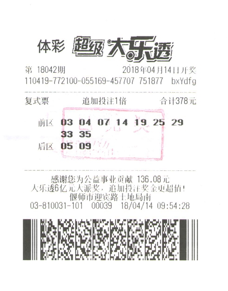 4月16日上午,記者在河南省體彩中心見到了前來領(lǐng)獎的洛陽購彩者張先生(化名),他向記者介紹:“這次大樂透買的復(fù)式追加,一共中了973萬元。”