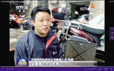 1月4日,大雪紛飛,穿著短袖搞搶修的張威,迅速火爆了朋友圈和媒體圈,被親切地稱(chēng)為“短袖哥”,甚至上了央視新聞聯(lián)播。作為一名退伍軍人,張威從2000年就走進(jìn)自來(lái)水公司,扎根一線搞搶修,曾獲得鄭州市職工技術(shù)運(yùn)動(dòng)會(huì)管道工冠軍,被授予市五一勞動(dòng)獎(jiǎng)?wù)隆?/p>