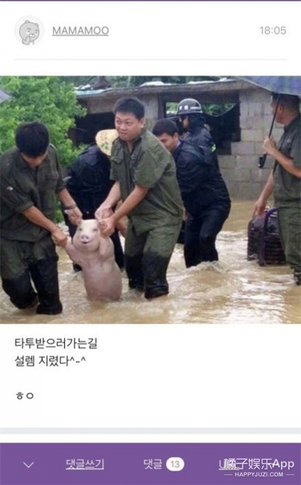 這頭洪水中的happy pig至此成了世界級(jí)的網(wǎng)紅,國(guó)外網(wǎng)友也開(kāi)始了各種PS: