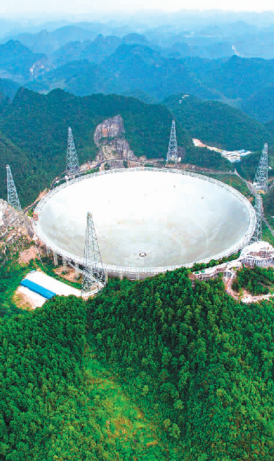 被譽(yù)為“天眼”的國家重大科技基礎(chǔ)設(shè)施500米口徑球面射電望遠(yuǎn)鏡,于2016年9月25日落成啟用。新華社記者 劉 續(xù)攝