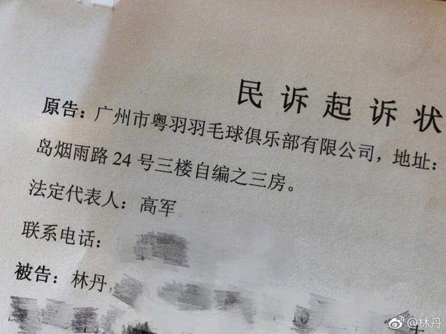 林丹收到的民事起訴狀