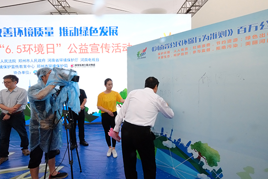 十一位領(lǐng)導(dǎo)共同啟動(dòng)了“《河南省公民環(huán)保行為準(zhǔn)則》百萬(wàn)公民電子簽名墻”正式上線儀式,并在《河南省公民環(huán)保行為準(zhǔn)則》百萬(wàn)公民簽名墻上,簽下自己的名字,成為首批在“百萬(wàn)公民簽名墻”上簽字的環(huán)保志愿者!