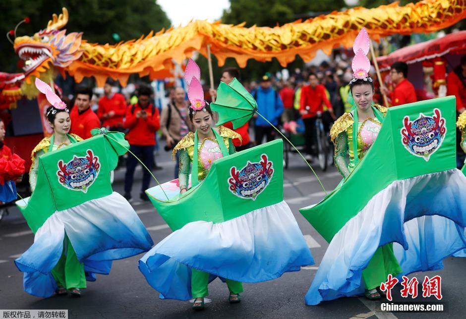 當?shù)貢r間5月15日,德國柏林,當?shù)孛癖娚碇厣椩诎亓治幕駳g節(jié)上參加游行。當日,柏林舉辦文化狂歡節(jié)大游行,數(shù)千名來自世界各地的狂歡者加入。