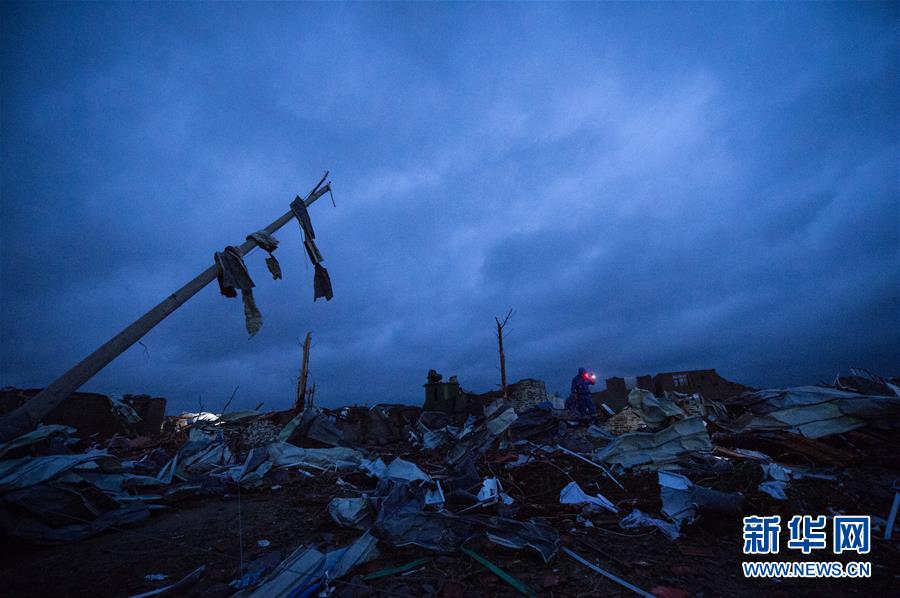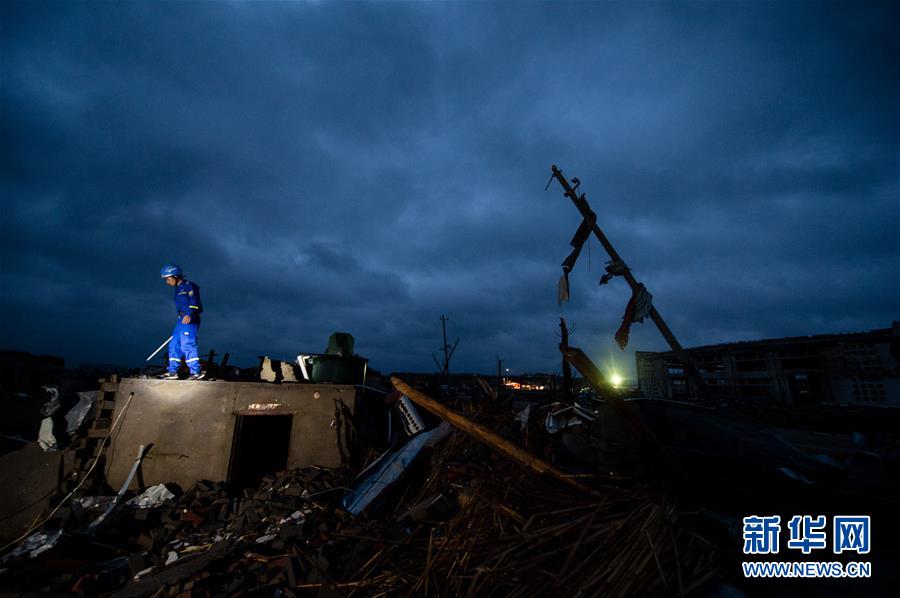 黎明時(shí)分,搜救人員繼續(xù)在江蘇省鹽城市阜寧縣受災(zāi)地區(qū)對(duì)廠房、民居等展開全面排查搜尋,營(yíng)救受災(zāi)群眾。23日下午,江蘇省鹽城市阜寧縣、射陽(yáng)縣部分地區(qū)突發(fā)龍卷風(fēng)冰雹嚴(yán)重災(zāi)害,多個(gè)鄉(xiāng)鎮(zhèn)受災(zāi),造成大量民房、廠房、學(xué)校教室倒塌,部分道路交通受阻。據(jù)初步統(tǒng)計(jì),已造成78人死亡,約500人受傷。
