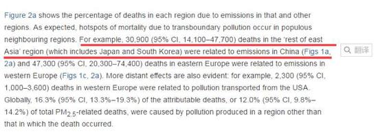翻譯:東亞其他地區(qū)(包括日本韓國(guó))有3.09萬人的死亡與中國(guó)的污染物排放存在關(guān)聯(lián)。(2007年數(shù)據(jù)——環(huán)環(huán)注)