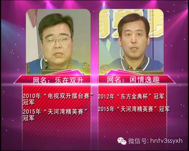 “樂在雙升”和“閑情逸趣”是一對老搭檔,城市對抗賽冠軍開封隊(duì)主力隊(duì)員,兩人搭檔曾獲得2015年天河灣精英賽冠軍?!伴e情逸趣”曾獲得2012年東方金典杯冠軍,“樂在雙升”曾獲得2010年電視雙升擂臺賽冠軍。